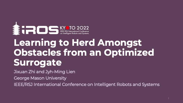 Learning to Herd Amongst Obstacles from an Optimized SurrogateDate: October 24, 2022Session: Motion and Path Planning 2, MoB-OL3.7 Share on Twitter Facebook LinkedIn Previous Next